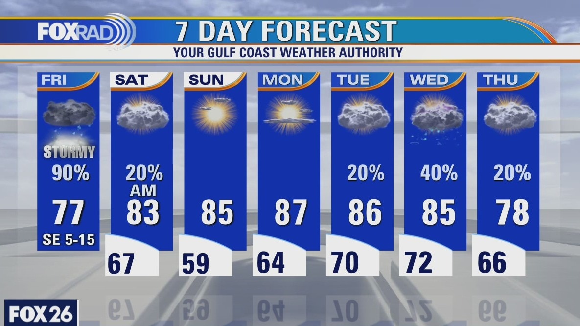We are mild to start our Friday with temperatures not cooling off much overnight. We're also seeing a few showers this morning with rain expected to increase in coverage and intensity later today. The entire area is under a slight risk for severe weather, with our best shot at seeing storms between 1PM and 10PM today. A few storms could produce gusty winds and large hail. The rain and storms should exit by the evening, with our weekend staying dry but also warm. Highs should reach the low and mid 80s Saturday and Sunday.