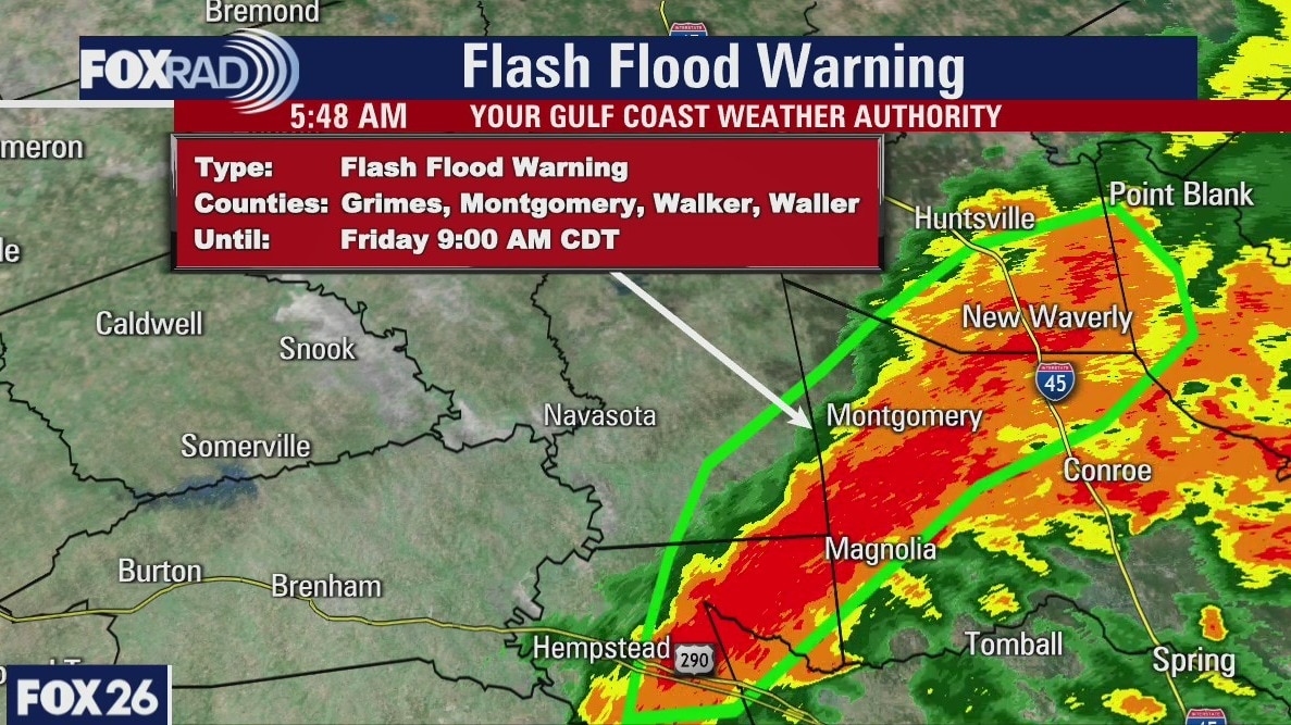 Flash flood warning until 9 a.m. for multiple Houston-area counties