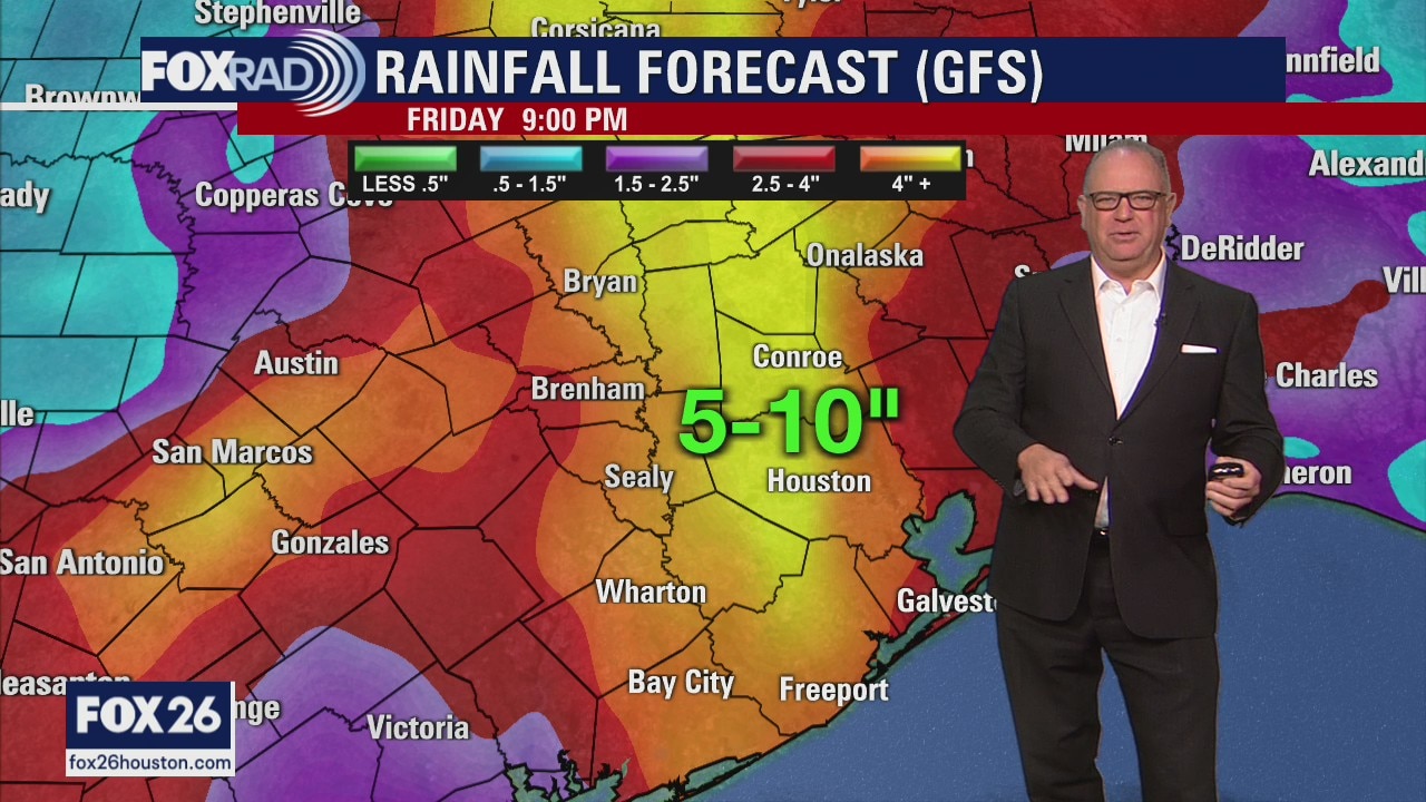 Heavy rainfall is likely on-and-off through at least Friday and that means flooding risks will continue for all of SE Texas and the Houston area. The air will remain very humid and the low causing all of this will stay off to our northwest. It will finally move by Thursday, but it will drag a weak front across the region. That will lead to some of the possibly heaviest rainfall from Wednesday into Thursday and a Flash Flood Watch is posted until 7am Thursday.