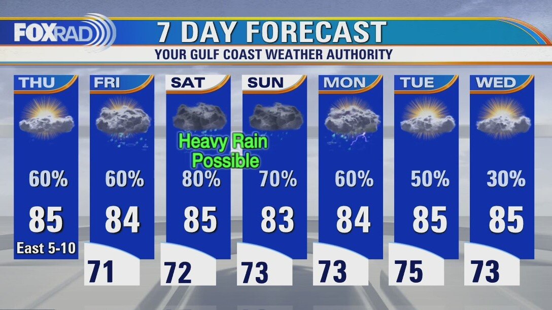 Our weather remains unsettled with several opportunities for rain over the next seven days. After an active night of storms, Thursday is starting off quiet but more storms are likely to develop once again this afternoon. Much like Wednesday, pockets of heavy rain will be possible where the storms set up. Rain is likely on Friday with our heavy rain threat ramping up this weekend. It's possible portions of the Houston-area will see 7"+ of rain before this very wet weather pattern exits by the middle of next week.