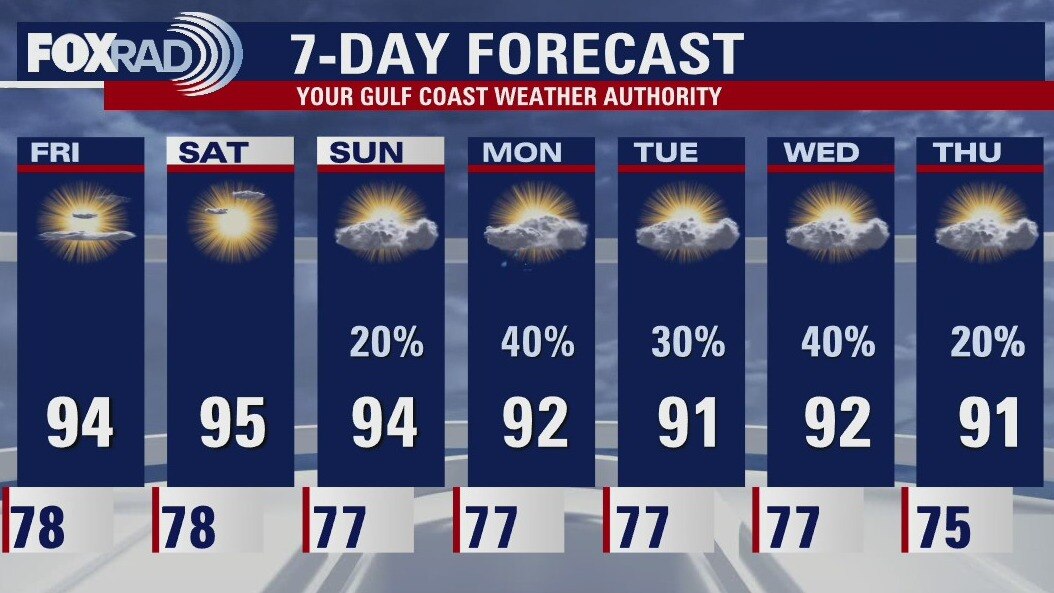 Temps will be hot and the humidity will be sticky heading into the weekend. A back-door front will stall near the Houston area early next week and that will bring showers back into the forecast. The temps will also drop by a few degrees, which isn?t too much. We are still monitoring the long range models indicating a tropical low could form in the southwestern Gulf in just over 10 days. It?s still very early, but we will keep an eye on it.