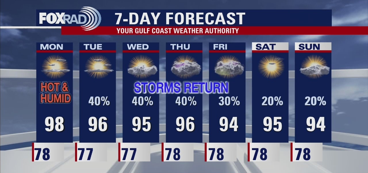 The hot and humid weather continues for one day before the storms make a comeback.