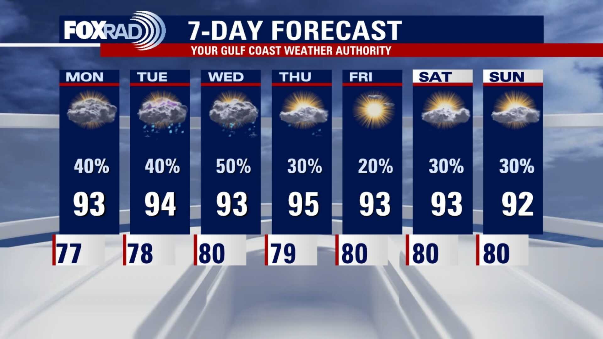 There will be a little better chance for mainly daytime showers or storms through Wed. The end of the week looks a little drier, but we will watch if what will likely become Grace will have any impact on SE Texas. It's too early to know yet, but we will watch it closely.