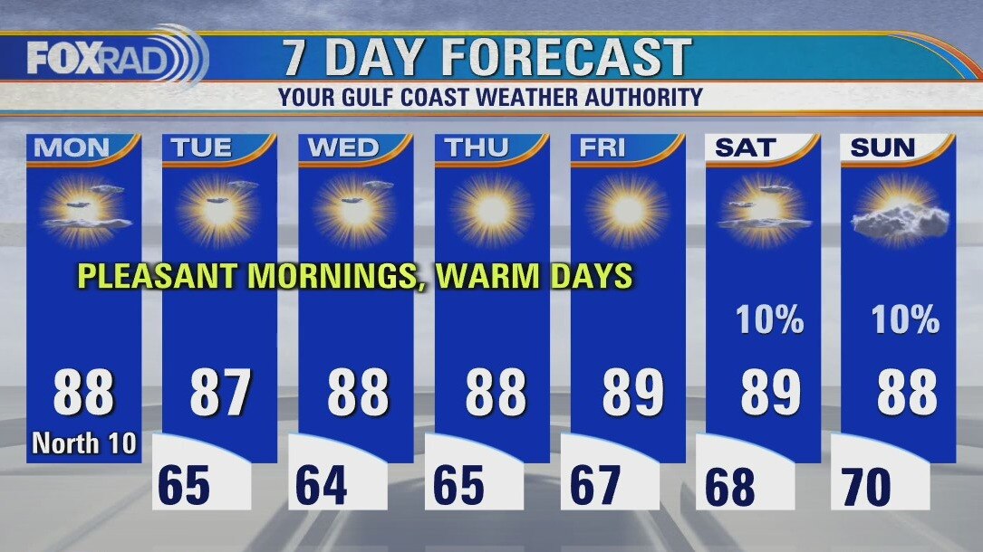 Over the last seven days, total rainfall amounts of 6-12" were common with some areas getting even more. Well, this week will be completely different. Look for drier air (following this morning's weak front) with sunny and warm afternoons and pleasant mornings. Morning low temps should drop to the mid 60s each day with afternoon highs in the warm upper 80s, but with reasonable humidity.