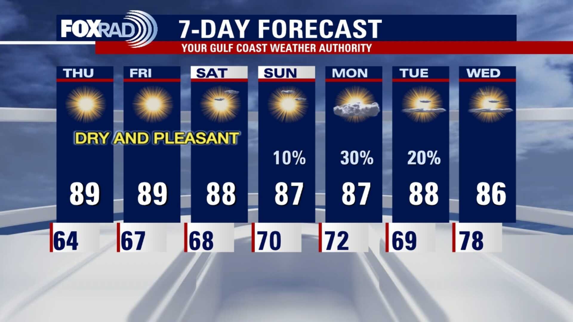 We end the weekend with less rain than we started. Sunday will be the transition into a fantastic fall week in Houston. Dry air will hang around southeast Texas all week with cool mornings and comfortable afternoons. Enjoy!