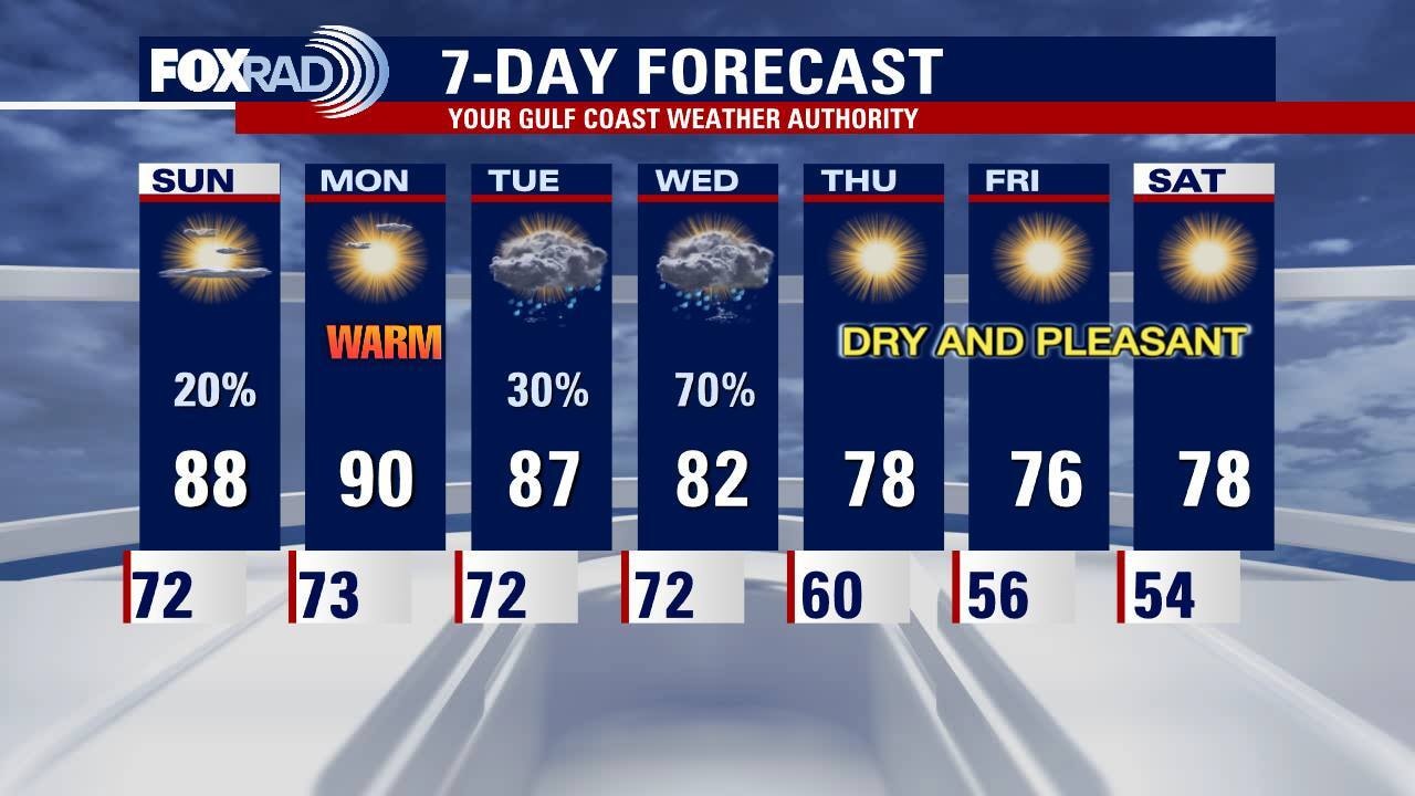 Less rain around Houston on Sunday compared to the scattered showers and downpours that started the weekend. Southeast Texas will see a cold front on Wednesday what will bring some showers and storms. The end of the week looks very pleasant with drier and cool air filling in behind the front.