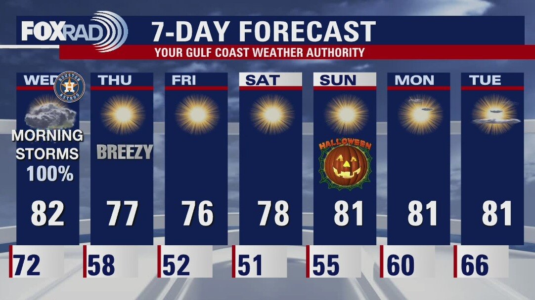 A strong cold front will move through Southeast Texas quickly on Wednesday morning. Houston should see some strong winds and heavy downpours between sunrise and Noon. After a breezy Thursday, the rest of the week will be pleasant with cool mornings and mild afternoons.