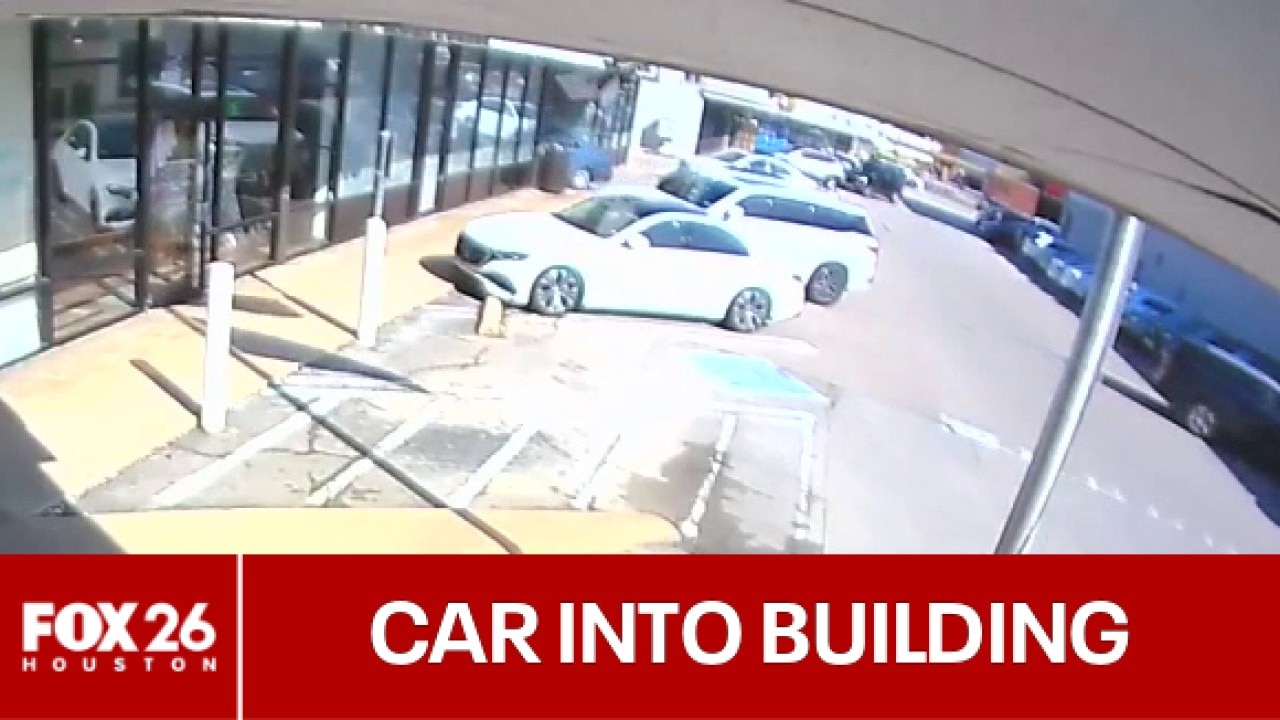 No injuries have been reported after a car crashed into a business at Houston's Weslayan Plaza on Wednesday. FOX 26's Sherman Desselle shares surveillance video and speaks to employees at the damaged building.