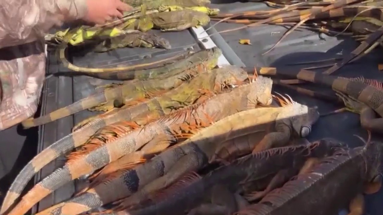 Cold-stunned iguanas being collected by Florida residents