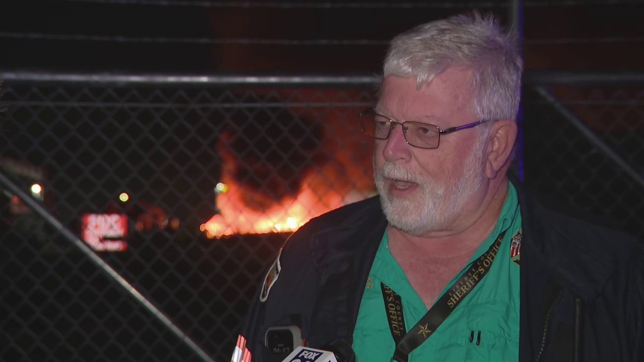 Liberty County Fire Marshal Nathan Green provides an update on the fire at a recycling plant in Dayton.