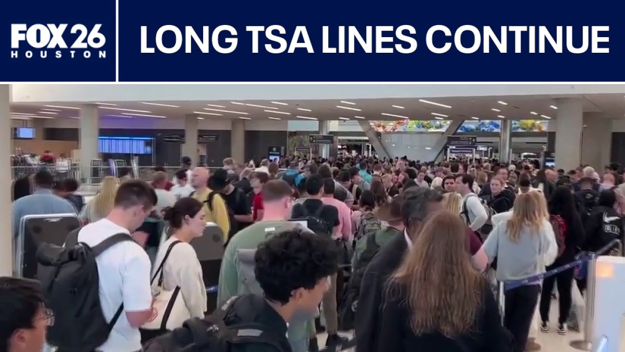 Houston's Bush Airport saw long TSA lines again Sunday as the partial government shutdown continued. FOX 26's Angie Rodriguez spoke to travelers as they waited in line.