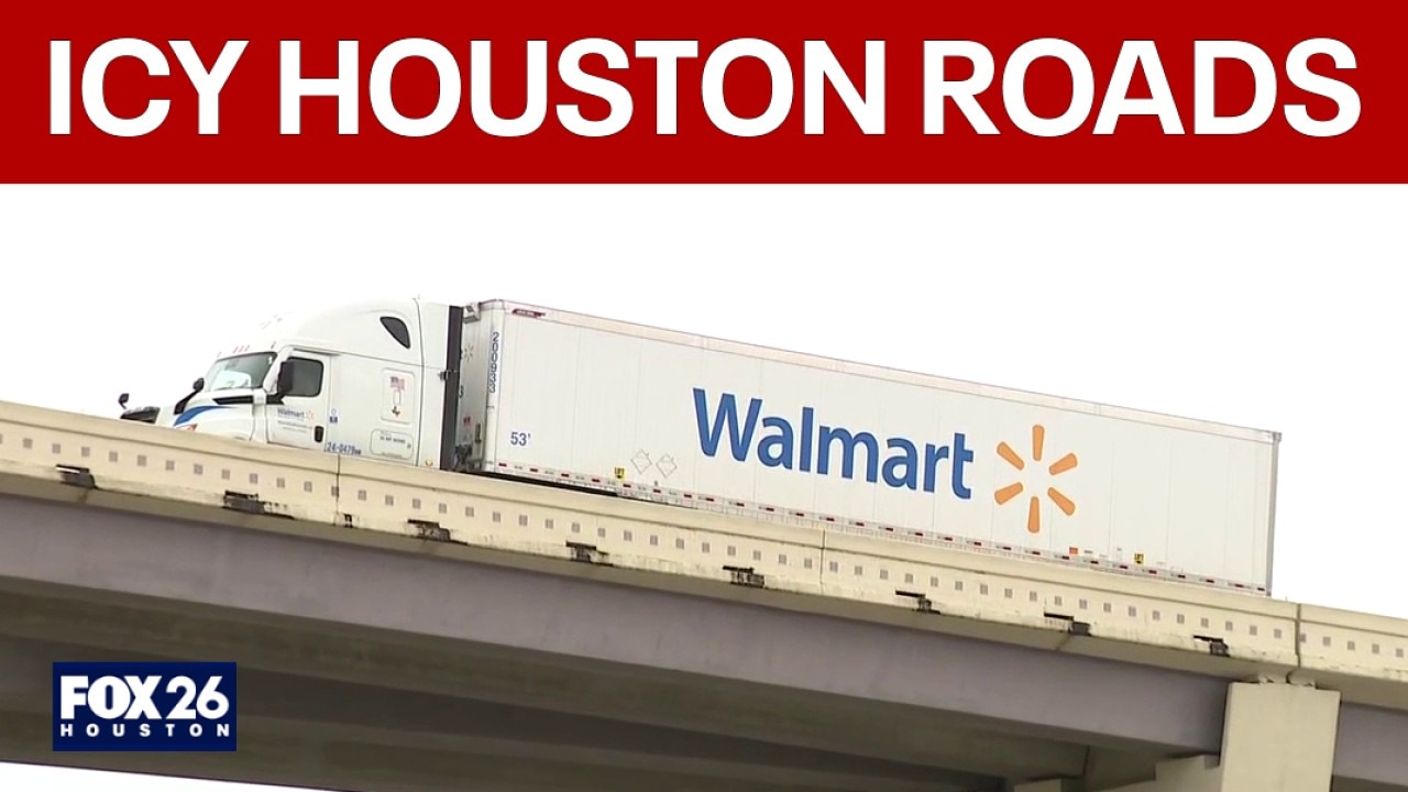 The flyover ramp on I-10 westbound to SH-99 northbound is icy. Officials say an 18-wheeler had to reverse all the way back down and another 18-wheeler is still stuck at the top.