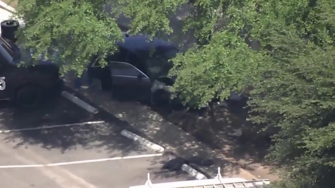 A possible robbery ended turned into a chase that ended in a crash in Houston on Monday, police say. Three people were detained, one of them taken to the hospital with a broken leg.