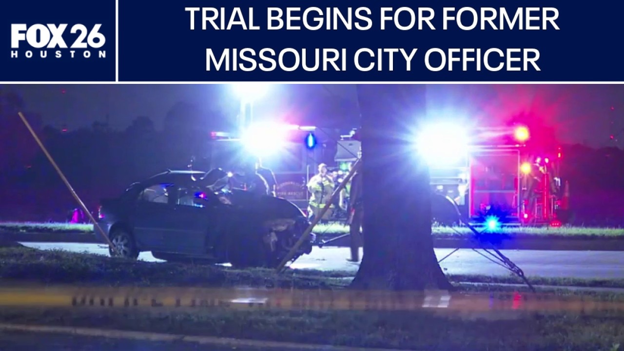 Opening statements began on Wednesday in the case against a former Missouri City police officer accused of crashing his patrol care killing three, including a man in his own back seat. FOX 26's Angie Rodriguez has the latest.