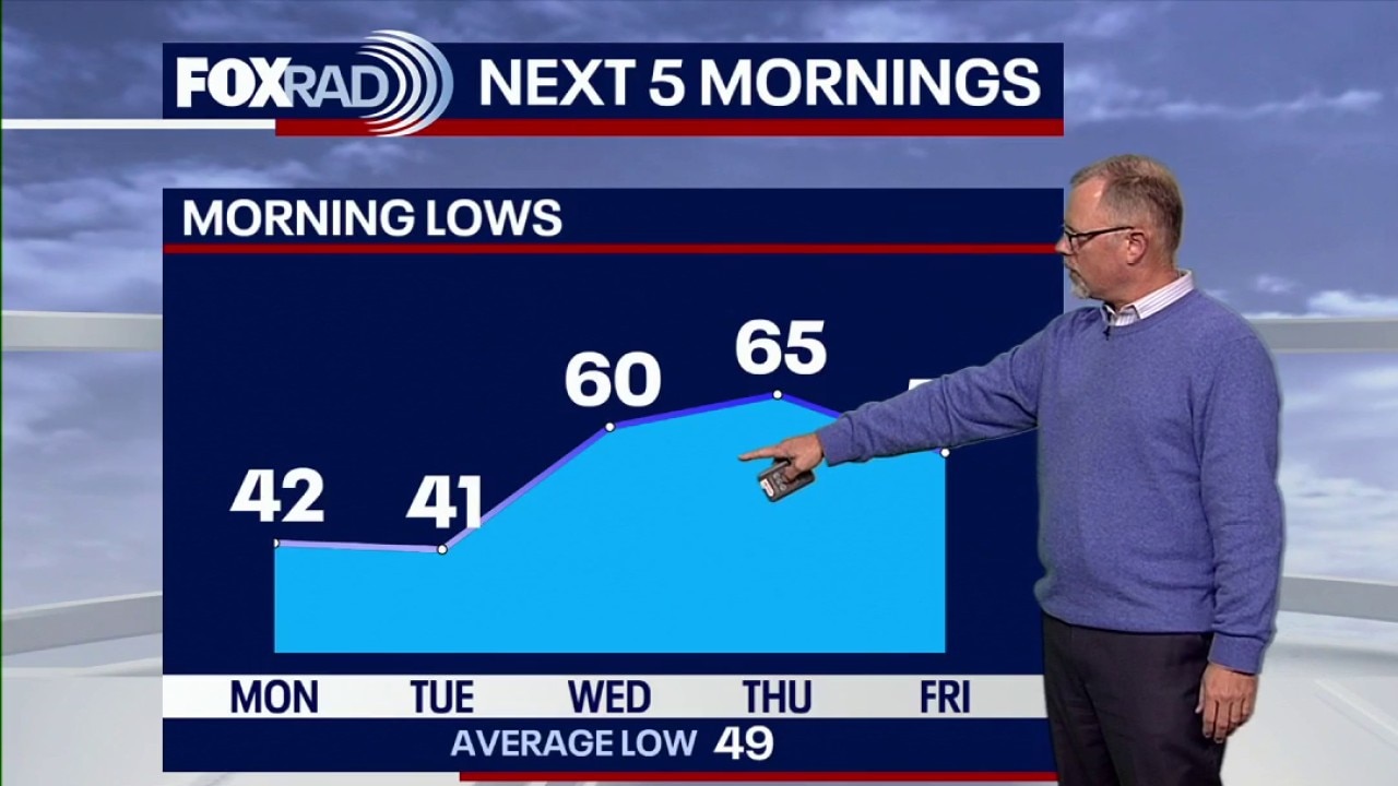 Look for temperatures to dip into the low-40s, maybe a few upper 30s, on Monday and Tuesday mornings. Comfortable afternoons are expected to start the work week.