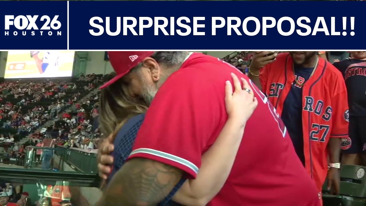 While the Houston Astros and LA Angels were battling it out in Daikin Park, an Angels fan had a big question for his Astros-loving girlfriend. FOX 26's Mekenna Earnhart was there for the surprise proposal!