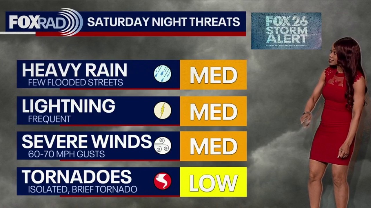 Southeast Texas has been upgraded to a 2/5 Likely risk for severe storms Saturday evening.
