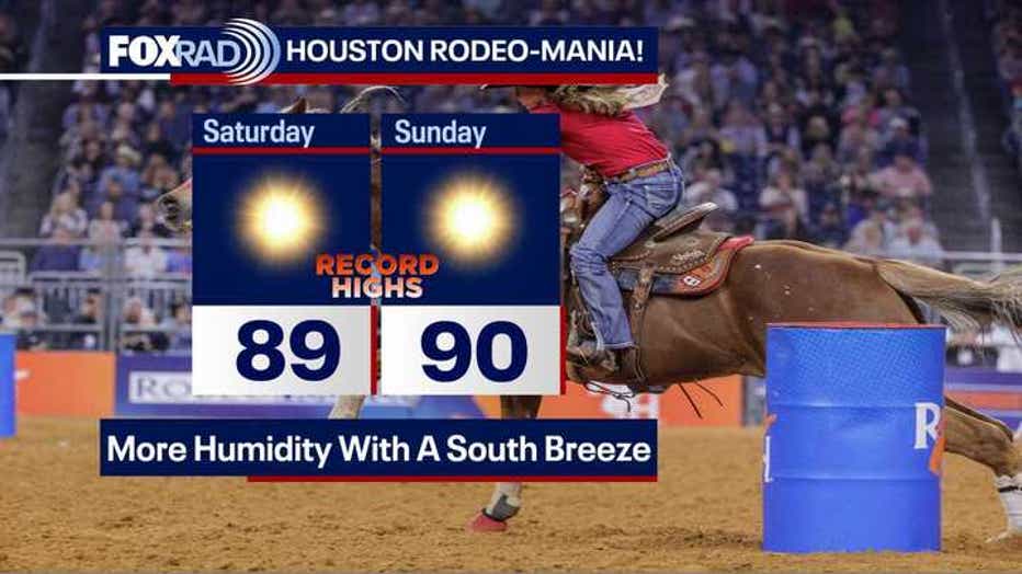 This evening, look for a nice southern breeze as conditions remain quiet, making for a great night for the Rodeo.