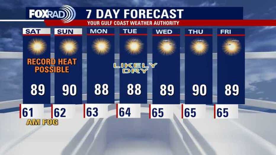 A little fog is possible overnight, as temperatures dip to near 60.