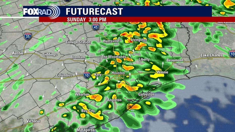 Scattered showers will begin overnight and through Sunday morning before heavy rain bands arrive midday into the evening. Training storms are likely with the possibility of street flooding.