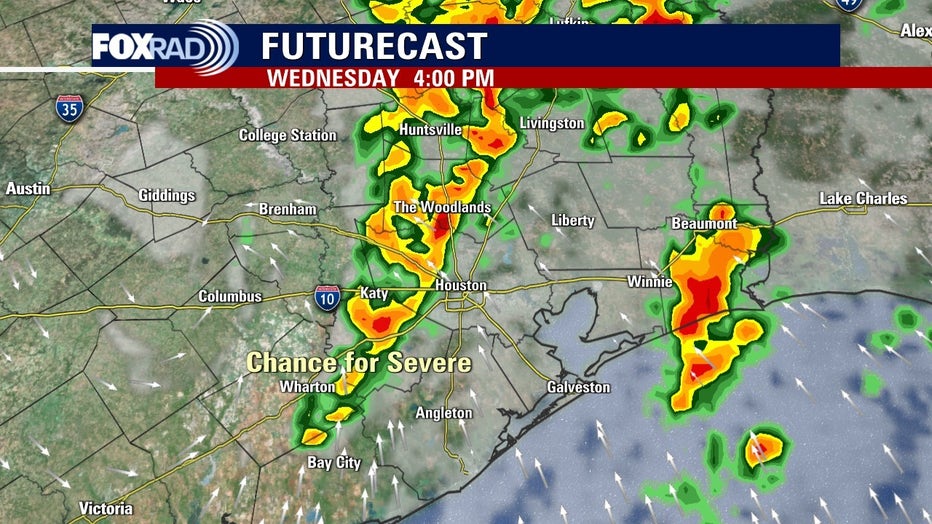 HOUSTON - A strong cold front will pass through Southeast Texas on Wednesday afternoon, bringing a chance for strong or severe thunderstorms.