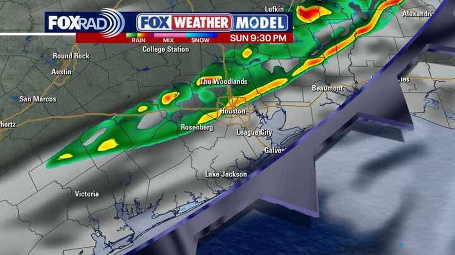 Behind Sunday night's cold front, temperatures will take a major dip, about 20 to 25° on Monday. High temperatures will only be in the low 60s and lows Monday night will be in the middle 40s for Houston, with even colder temps expected north of Houston.