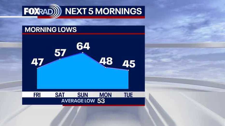 By early Friday morning, temperatures dip enough for light jacket weather, especially before sunrise into the 40s.