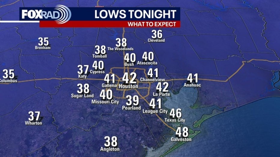 Look for temperatures to dip into the low-40s, maybe a few upper 30s, on Monday and Tuesday mornings. Those are much closer to the mornings we would expect to see around Southeast Texas for this time of February.