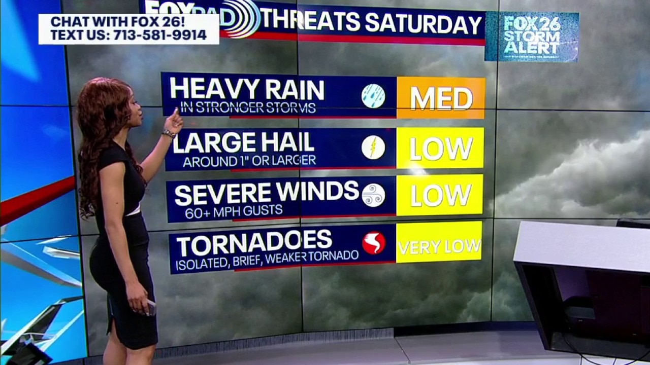 A slow-moving cold front will bring the threat for a few severe storms Saturday evening into Saturday night. The main risk will be some brief wind gusts of 60+ mph that could cause damage. The other risk is heavy rain that could lead to isolated street flooding in and around Houston. The main risk for flooding will be overnight Saturday through Sunday morning. Download our free streaming app Fox local for updates on your Easter weather over the weekend.