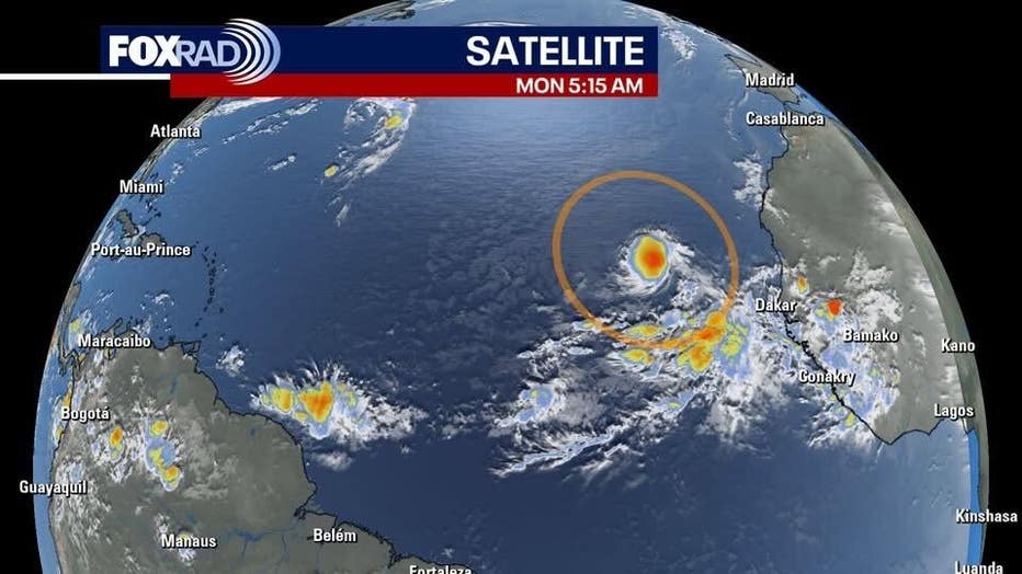 The first hurricane of the season is likely to form in the Atlantic Ocean this week. This system is a strong tropical wave and is very far from Texas - more than 4,000 miles. Through the week, the area of low pressure will move westward, likely being upgraded to Tropical Storm Erin, then a hurricane.