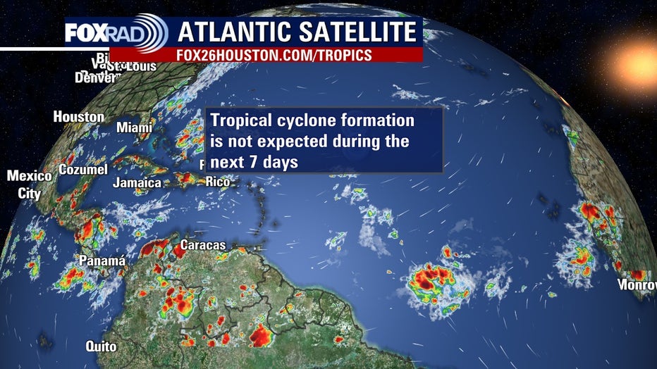 The tropical wave that we were monitoring the last few days now has no chance for further development. Meaning things are quiet across the Atlantic basin, the Caribbean, and into the Gulf.