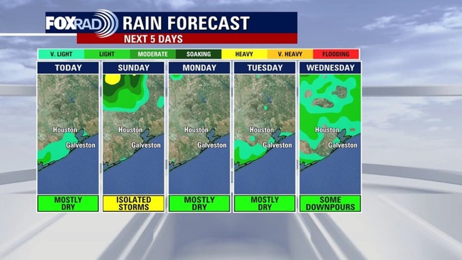 HOUSTON - Look for only a 20% chance of a few Saturday evening showers and storms.