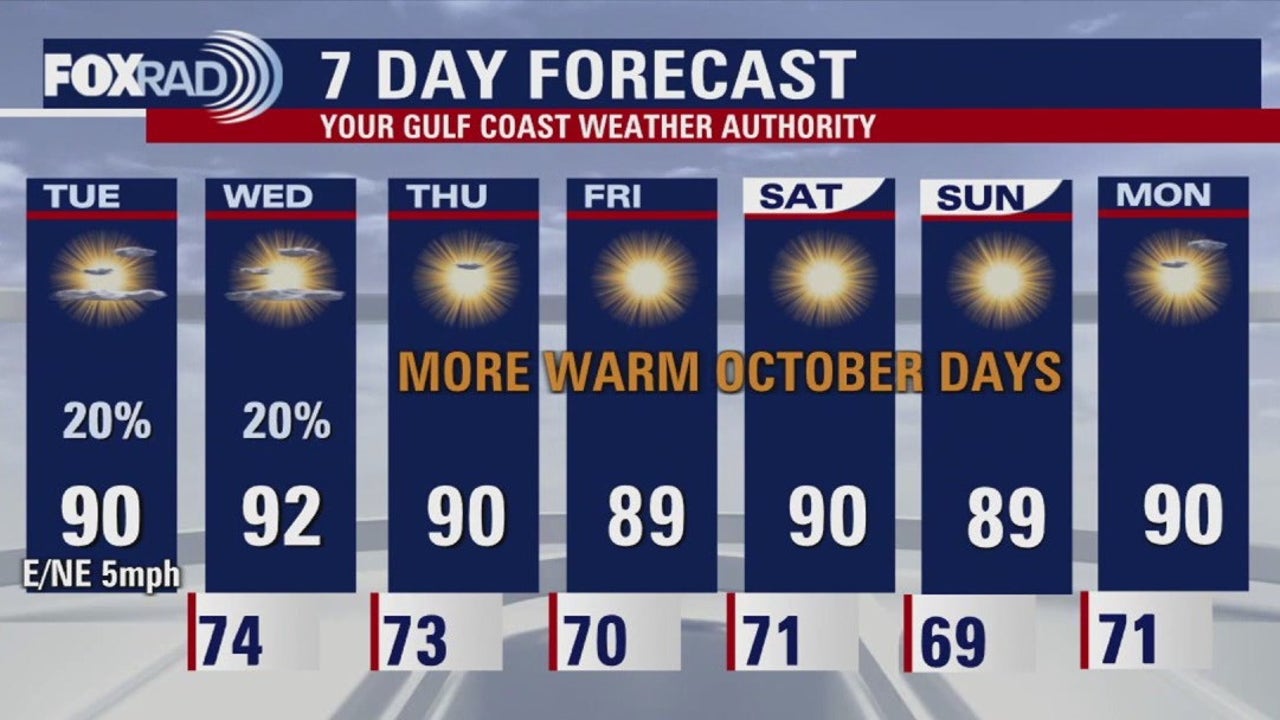 Prepare for temperatures to remain warm for October for all your outdoor plans this week. Rain chances are slim. Look for a few showers for the afternoon and evening through Wednesday. An air quality alert for slightly higher ozone levels has been issued for the area Tuesday.