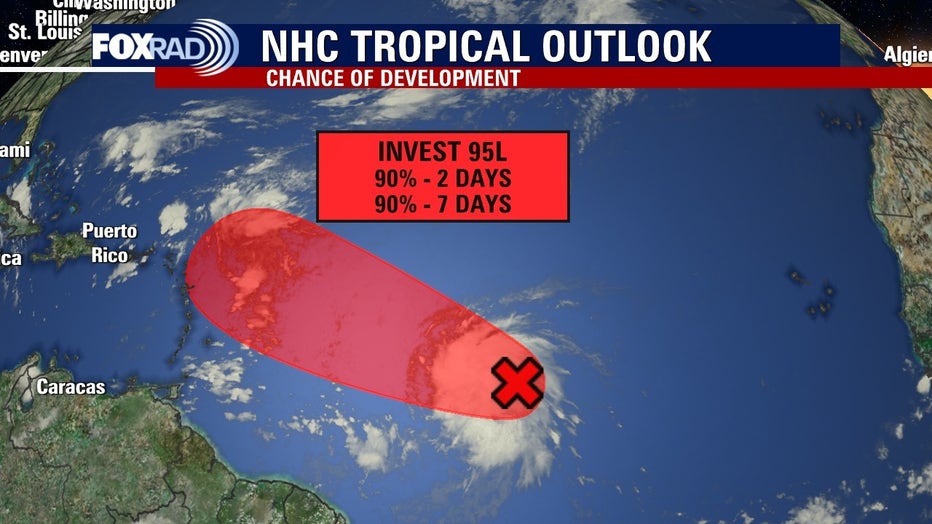 The National Hurricane Center continues to monitor a disturbance in the distant Atlantic. This tropical wave has a HIGH chance of development. This formation is very far away from us but could approach the Lesser Antilles late-week. The next name on the list is Jerry.