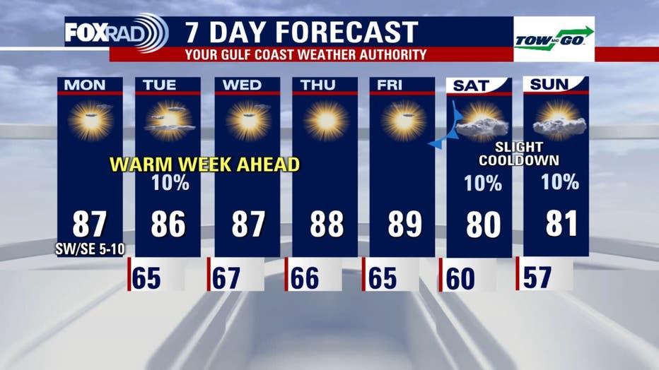 The quiet pattern continues with warm afternoons and mild mornings through the rest of the workweek. Rain chances stay low, but a few drizzles are possible from time to