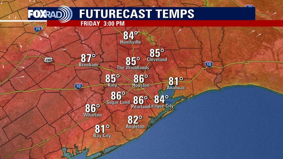 HOUSTON - Today will be mostly sunny and very warm with temps climbing into the upper 80s under mostly sunny skies.