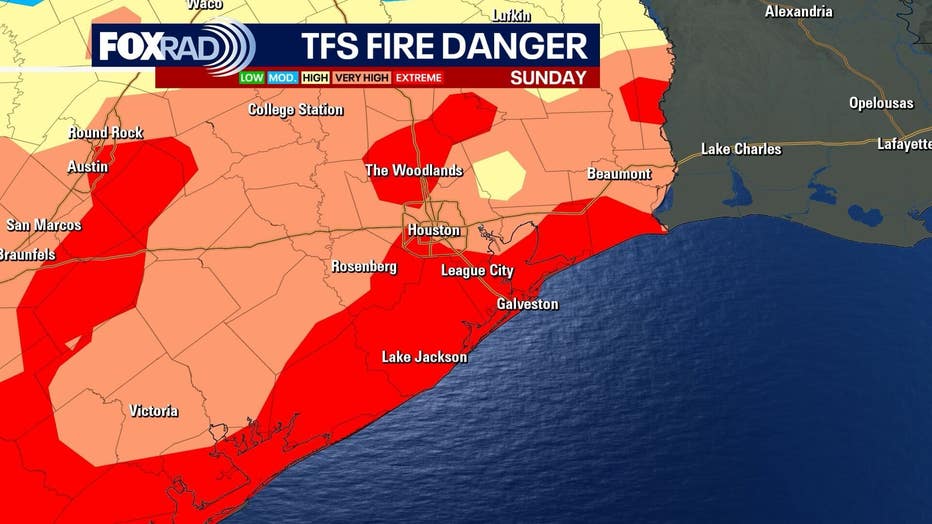 Starting Sunday night and into Monday, the air turns much cooler. Overnight lows will dip into the low 40s with upper 30s north of Houston both Monday morning and Tuesday morning. Continuing the temperature swings, we'll be back in the 80s by mid to late next week.