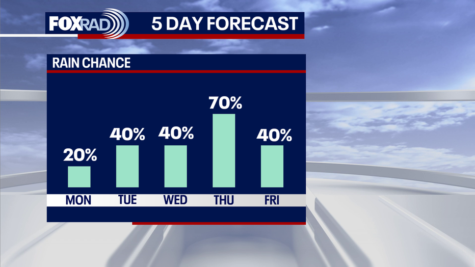 The warm trend is expected to hold through the weekend and into early next week thanks to a steady onshore breeze. Daily record highs are in jeopardy Sunday through Tuesday with records sitting in the mid 80s and forecast highs also in the mid 80s.