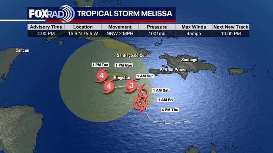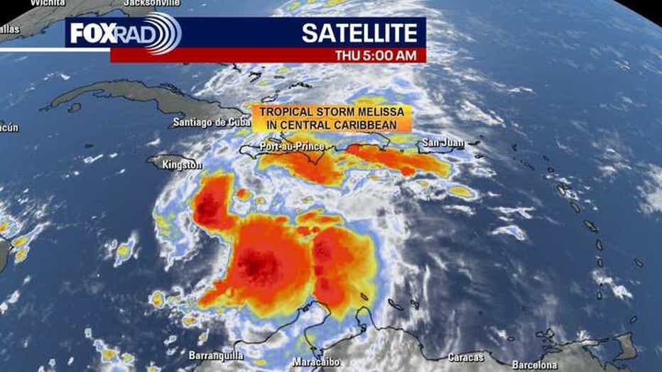 Tropical Storm Melissa still looks fairly disorganized in the Central Caribbean. But it is forecast to slowly get stronger and blow up into a major hurricane by early next week as it pushes into warmer waters and encounters less shear.