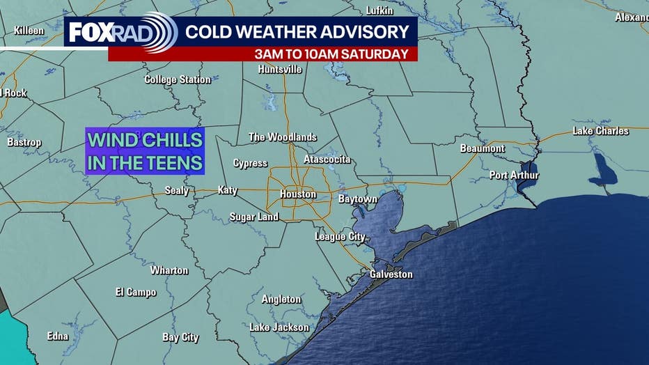 A Cold Weather Advisory is in effect for the entire region on Saturday morning.