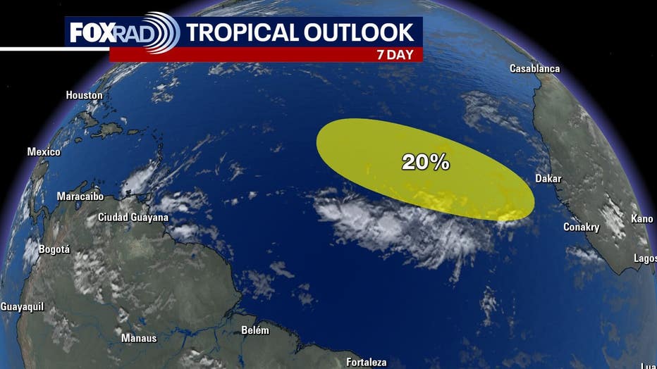 There is only one tropical wave to watch at this point, and it is very far away. A wave that moved off the west coast of Africa two days ago is passing south of the Cape Verde Islands and the National Hurricane Center give is only a 20% chance to become a depression or tropical storm over the next 7 days.