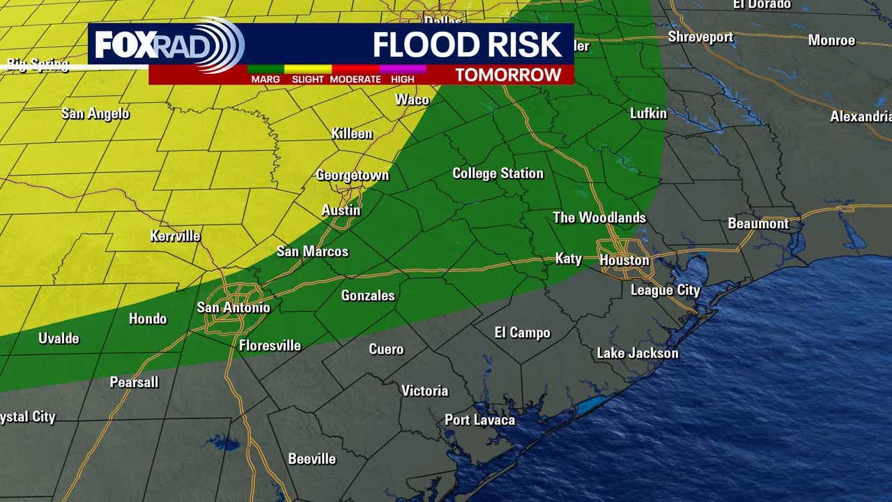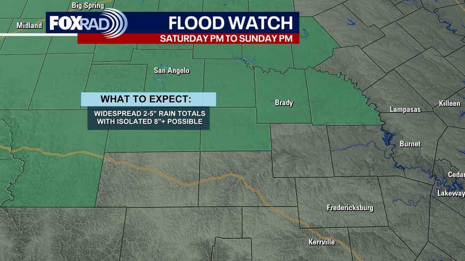 Flood risk across Western and Central parts of Texas will increase as well with a Flood Watch northwest of Kerville and Fredericksburg starting Saturday afternoon.