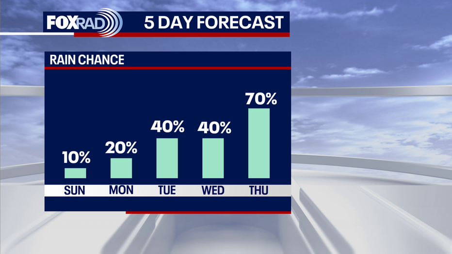 By Tuesday, rain chances increase with daily rain chances lasting Tuesday into at least Friday. Our longer-term forecast models show the potential for above-average precipitation that what we typically see this time of year.