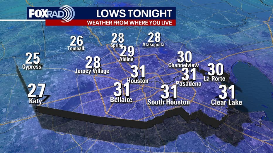 HOUSTON - Southeast Texas can expect dry weather with lows near 30 Thursday evening and highs in the 50s Friday with mostly sunny skies. The pattern is shifting as it heads into next week with more seasonal temperatures and several chances for rain.