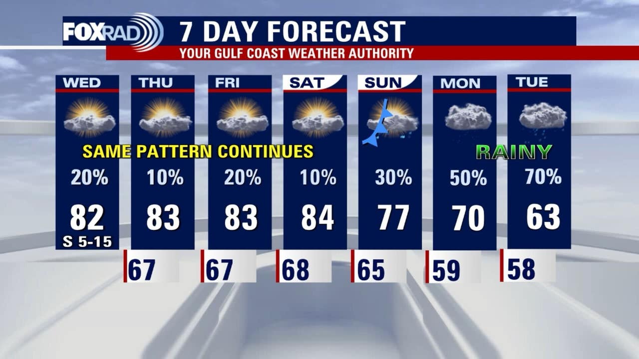 Otherwise, look for a few light showers, slightly more wind and highs again in the low 80s.