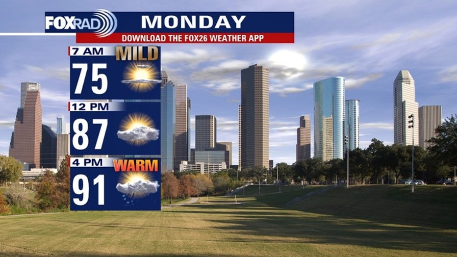 The high pressure system is sticking around southeast Texas, so the forecast for Monday looks a lot like conditions seen and felt on Sunday.