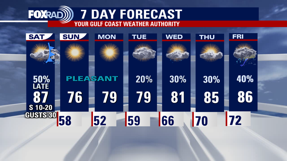 HOUSTON - Saturday will be warm, humid, and breezy with fluctuations in cloud cover and isolated showers and/or storms during the day, with a more potent round arriving in the evening.