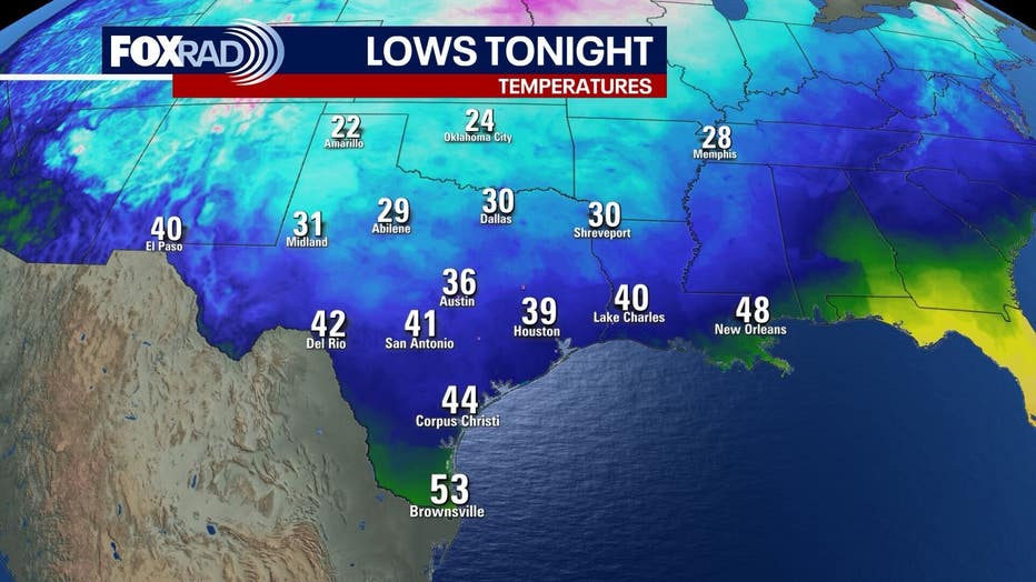 By tomorrow and Wednesday, conditions should improve. Expect clearing skies, some sunshine, cold mornings and pleasantly cool afternoons. Lows outside of Houston and well to the north could briefly drop to near freezing, but a damaging freeze isn't expected.