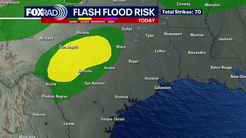 Rain resumed in parts of the Hill Country early this morning and scattered downpours are possible through the afternoon as well. The National Weather Service has that area under a flood watch until 7 p.m. with 2-4" of rain possible and even more in isolated spots.