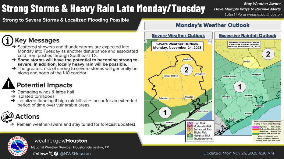 HOUSTON - A FOX 26 Storm Alert is in effect for tonight and very early Tuesday. Starting early Monday afternoon, severe storms hit northern parts of the Houston-area, bringing some heavy rain and a tornado.